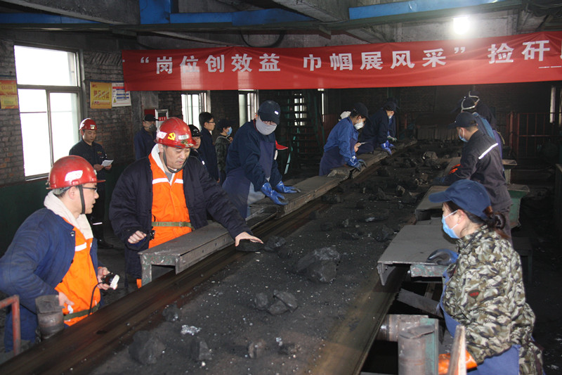 工会女工委开展的"岗位创效益巾帼展风采"捡矸比赛活动是矿岗位创效活动的延展深化,也是提高全员煤质意识,积极应对当前煤炭市场严峻形势的一项有效举措,将进一步激发广大女职工爱岗敬业的积极主动性,以岗位创效的实际行动向"三·八"妇女节献礼。