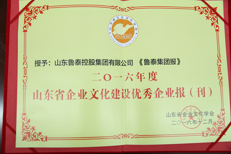 近日,由山东省企业文化学会举办的"山东省企业品牌价值百强新闻发布会暨山东省企业文化与品牌建设工作年会"在济南召开。会上,鲁泰控股集团被评为"2016年度山东省企业文化建设先进单位",《鲁泰集团报》被评为"2016年度山东省企业文化建设优秀企业报(刊)"。