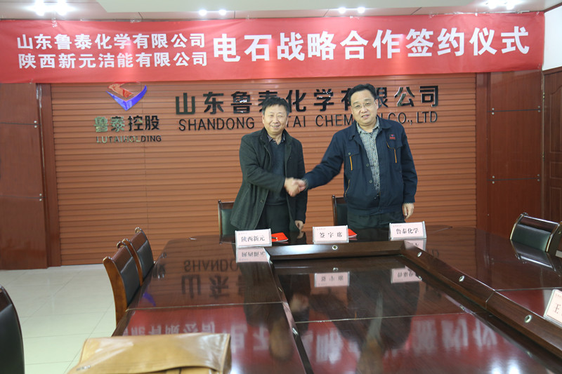 1月9日,陕西新元洁能有限公司总经理晁建荣、副总经理许崇基在集团公司副总经理薛培华、经营部经理楚振华的陪同下,到鲁泰化学实地考察调研,并签订了电石战略合作协议。鲁泰化学公司总经理申玉海、副总经理陈海天等参加了签约仪式。