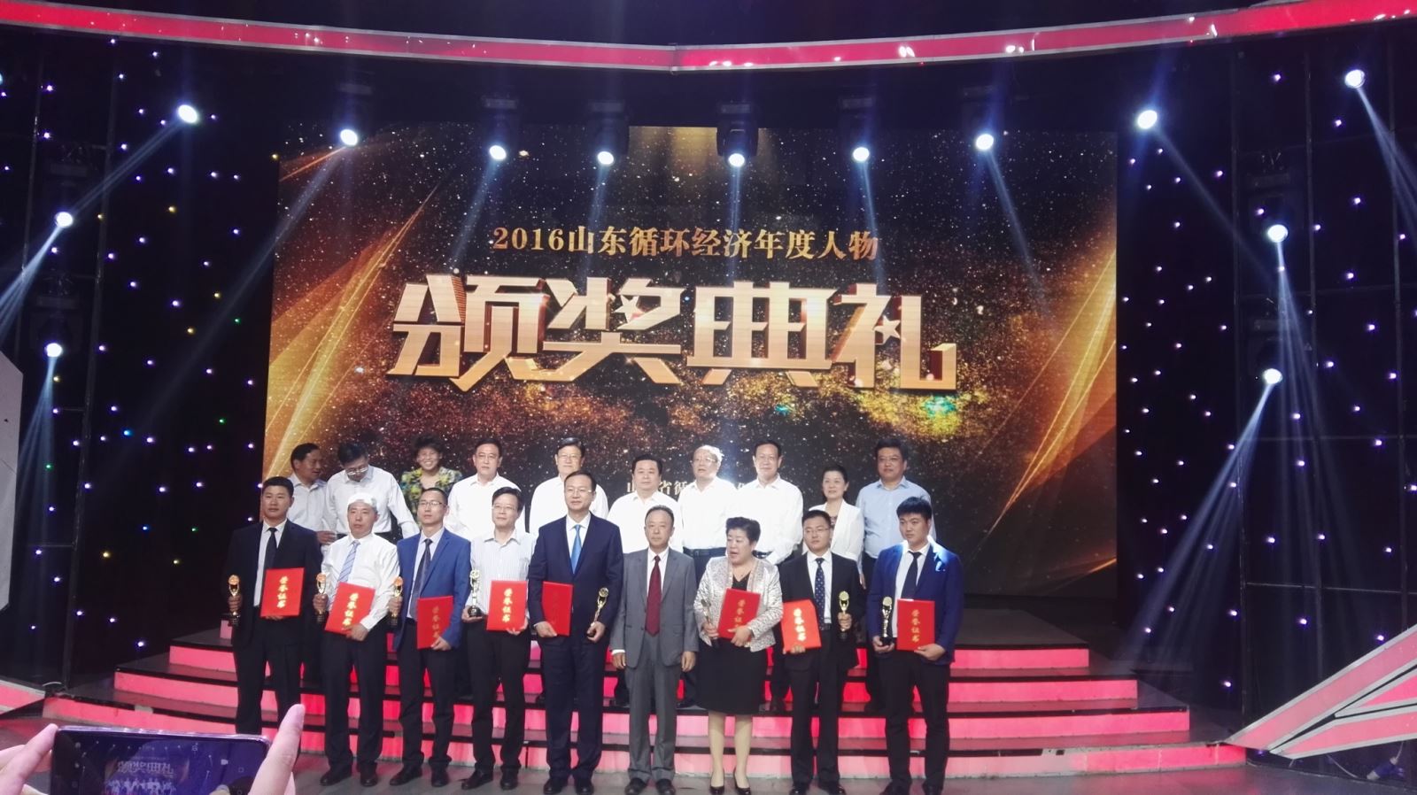 6月8日,由山东省循环经济促进会和山东广播电视台主办的"2016山东循环经济年度人物"颁奖典礼在山东广播电视台演播大厅举行。集团公司总经理李合军荣获"2016山东循环经济十大年度人物"并登台领奖,成为全省发展循环经济先进典型人物的杰出代表。
