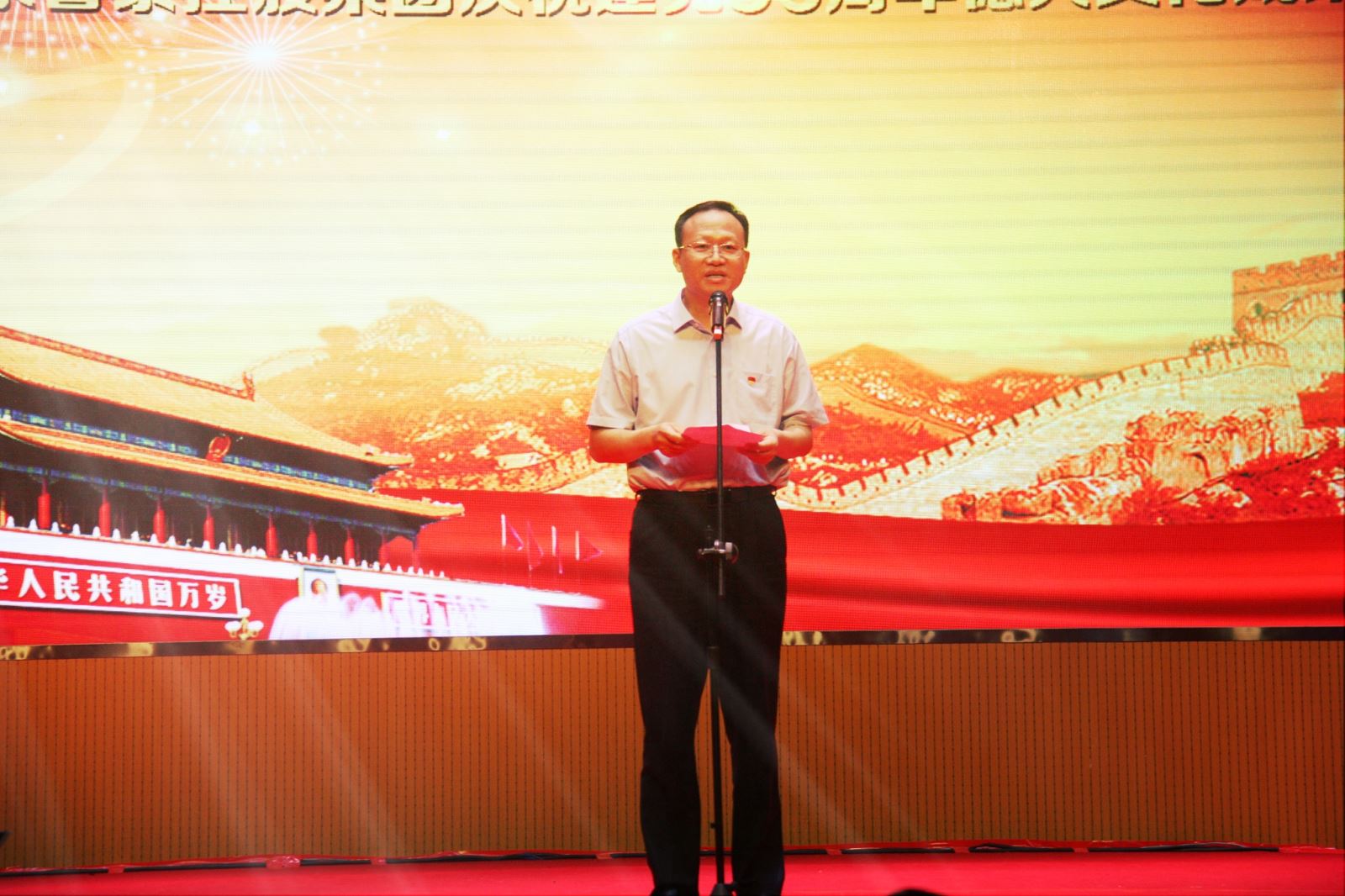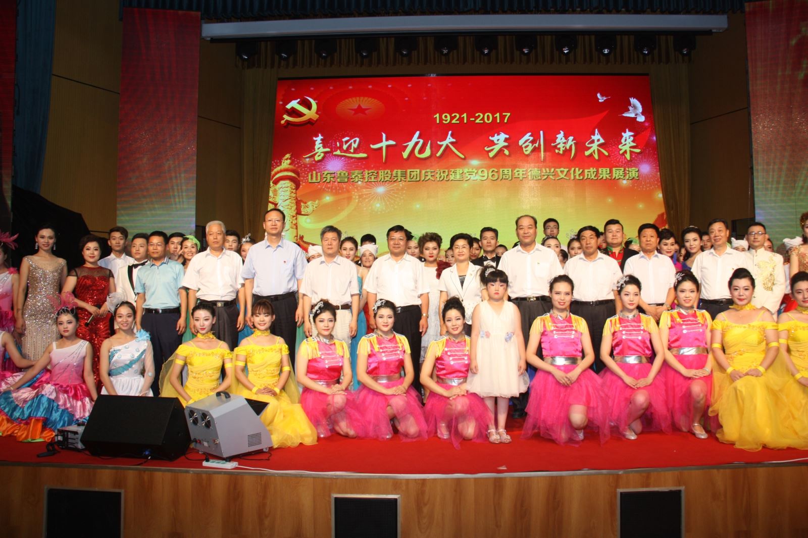 欢声笑语庆盛世,鼓乐喧天讴歌党。6月30日晚,鲁泰控股集团"喜迎十九大、共创新未来"庆祝建党96周年"德兴"文化成果展演在太白湖新区新城发展大厦拉开序幕。演出中,由各企业职工带来的歌曲、舞蹈、小品、快板、朗诵、戏曲等十几个节目轮番上演,用精彩纷呈的文艺表演形式向职工诠释着"喜迎十九大、共创新未来"的美好情怀。