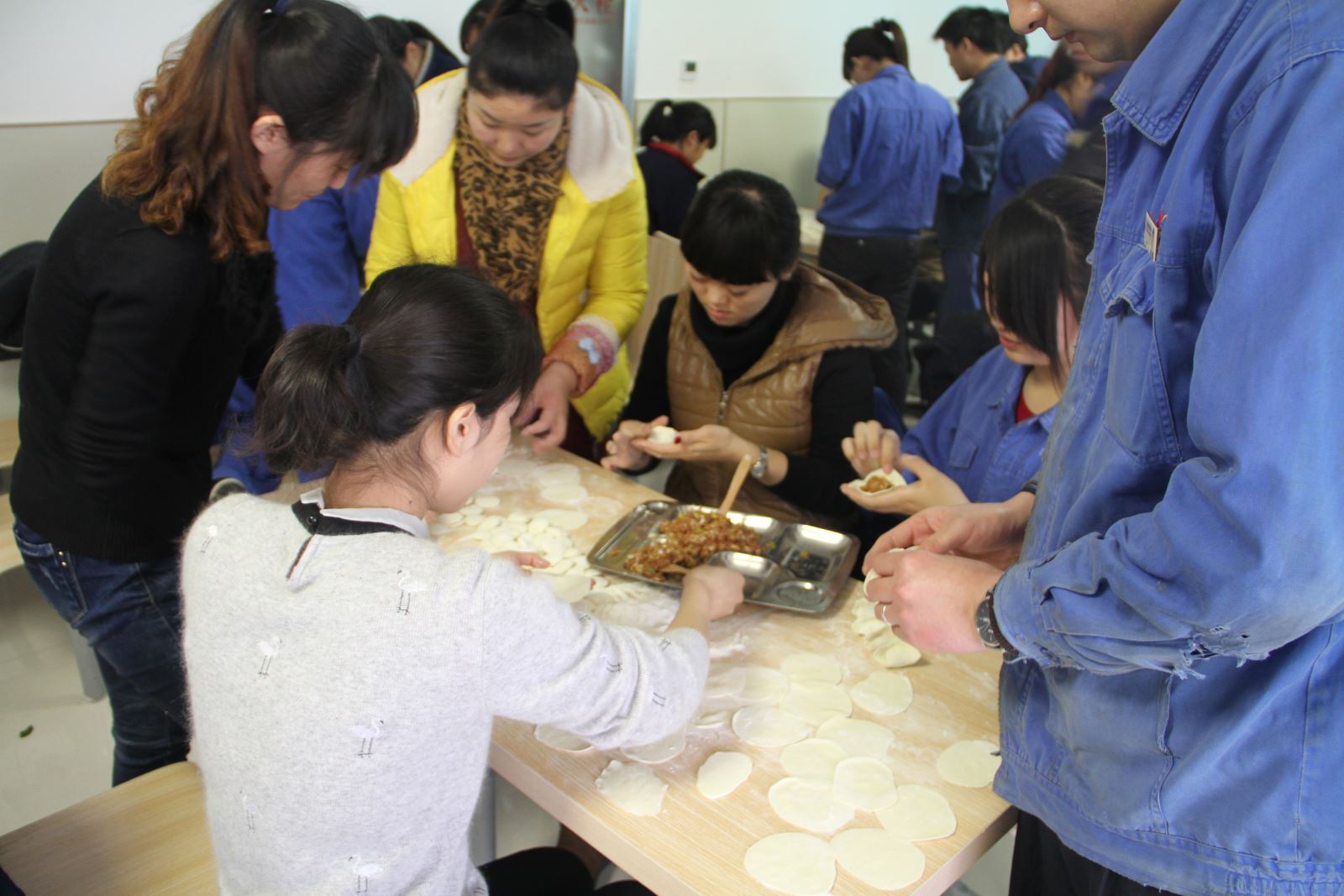 好吃不过饺子,温暖不过集体。为营造新春节庆氛围,感谢员工在工作中的辛勤付出,为那些在假日里坚守岗位的员工送上真切的关怀,让各位员工感受到节日的温暖,2月16日金威煤电公司团委组织各单位青年员工40余人齐聚一堂,开展"2015迎新春吃饺子一家亲"活动。